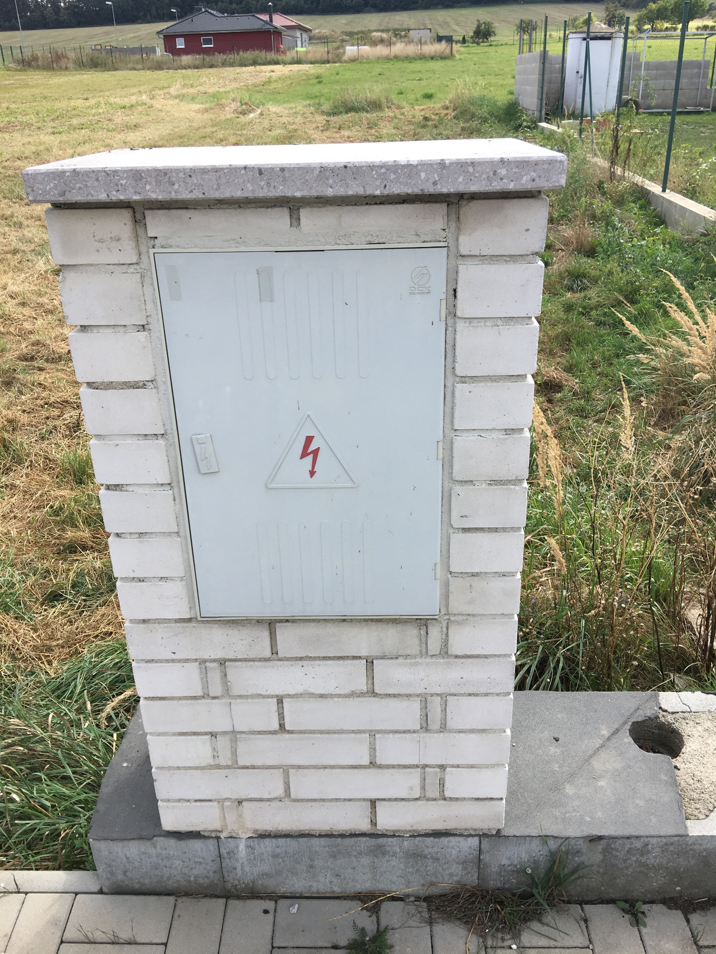 Na internetu jsem našel, že se rozvodné skříně pro ČEZ, dvoutarifní připojení a v provedení plast, prodávají v ceně od 4 200,- do 4 600,- Kč. Nalezl jsem novou, nepoužitou na www.bazos.cz za cenu 3 500,-Kč a tak jsme ji zakoupili. Náš stavař mezitím nakoupil bílé křemičité cihly, abychom pilíř stavěli ve stejném vzhledu jako je ten pro ČEZ. Celkové náklady na stavbu pilíře vč. stříšky a rozvodné skříně jsme sečetli na 7 000,- Kč. Dále bylo potřeba propojit hlavní jistič s naším pilířem pro připojení elektroměru a provést revizi. Toto nám elektrikář zhotovil za cenu 500,- Kč, celkově jsme tedy u této části na položce 7 500,- Kč.